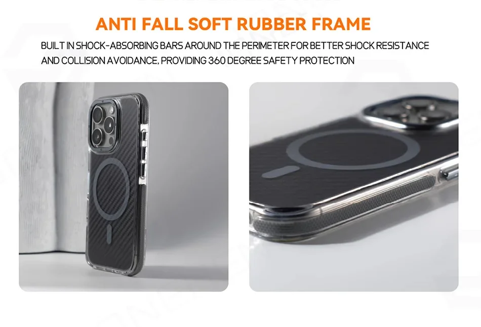 A durable carbon fiber pattern gives it a premium feel, while the built-in magnetic ring ensures a strong hold with all MagSafe chargers and accessories.