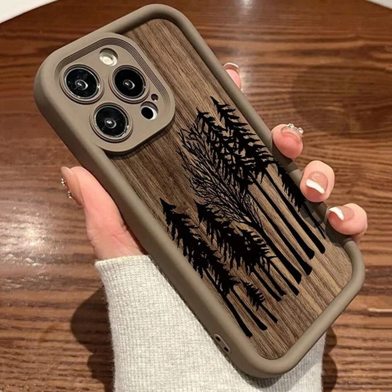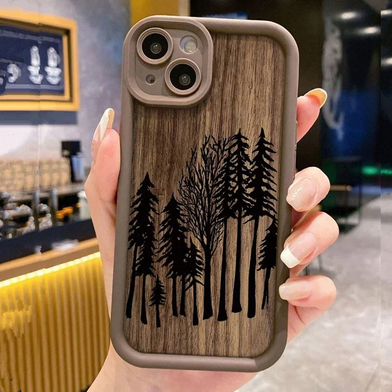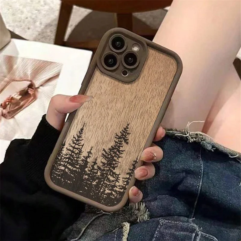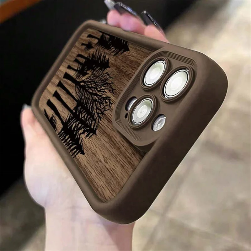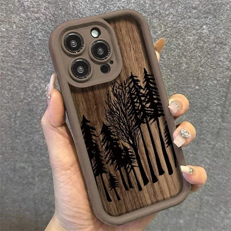 Retro Forest Brown Wood Soft Phone Case for iPhone 16 15 14 13 Pro Max 11 12 Mini XR X XS Max 7 8 Plus SE2 Shockproof Cover